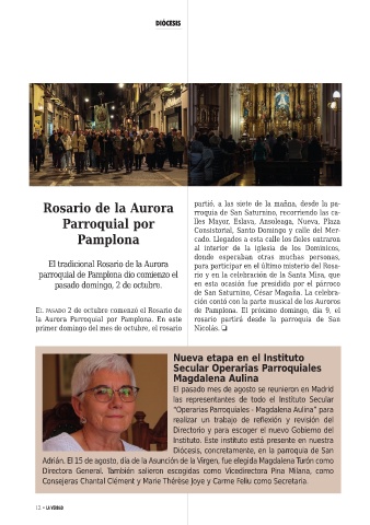 la Aurora Parroquial por Pamplona. En este rosario partirá desde la parroquia de San