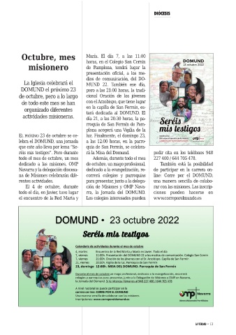 réis mis testigos”. Pero durante rá la Misa del Domund. pedir cita en los teléfonos 948