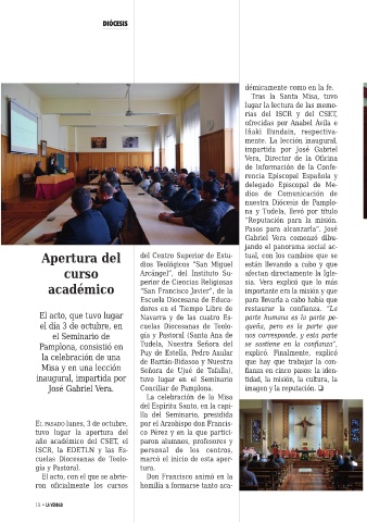 José Gabriel Vera. Conciliar de Pamplona. imagen y la reputación. ❏
