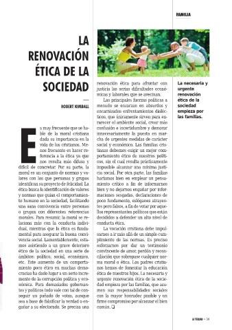 mento de la corrupción política y eco- urgente renovación ética de la socie-