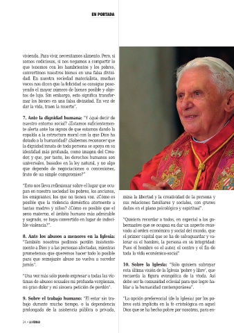 9. Sobre el trabajo humano: “El estar sin tra- “La opción preferencial (de la Iglesia) por los po-