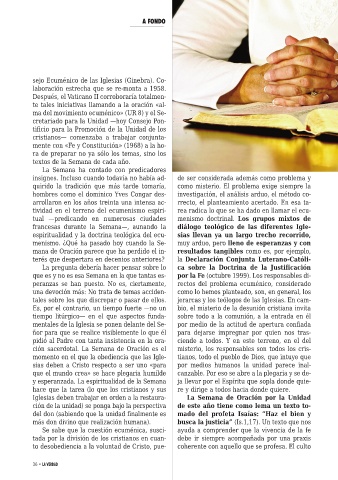 ción sacerdotal. La Semana de Oración es el misterio, los responsables son todos los cris-