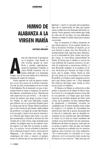 II del Infierno. En el momento en que el per- El Himno a la Virgen se estructura en dos