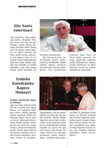 izeneko gutun apostoliko eta duaren 31ko ilunabarrean, Katedralean. Goian bego.