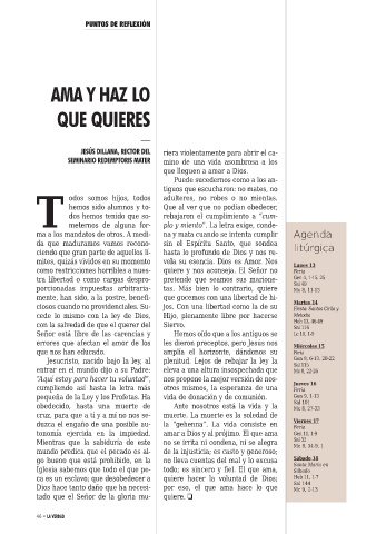 Iglesia sabemos que todo el que pe- todo; es sincero y fiel. El que ama, Sábado