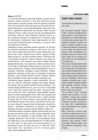 «Badakizue legean agindua: Ez egin adulteriorik. Nik, be- zaldiarekin jarraitzen dugu, zorion-