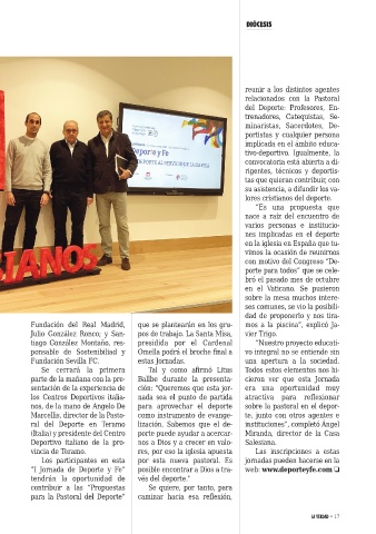 “I Jornada de Deporte y Fe” posible encontrar a Dios a tra- web: www.deporteyfe.com ❏