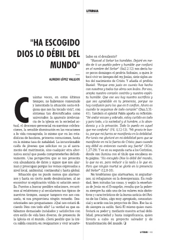 vamente. Una perspectiva que se nos presenta ta página: "Ha escogido Dios lo débil del mundo,