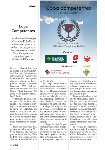 gión. De esta manera, además patrimonio navarro y los alum- tos, Claret Larraona 37 y San-