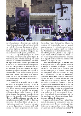 recuperar este sentido último, a la que nos in- cisco de Javier que nos ayuden a vivir como cre-