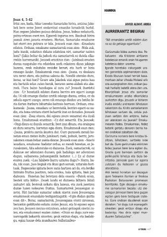 bat etorri zen putzura ur bila. Jesusek esan zion: –Emadazu na ez da gehiago egarrituko”.