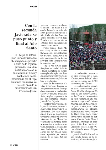 Francisco Javier. do de amenizar la celebración, Carlos Elizalde, Obispo de Vi-