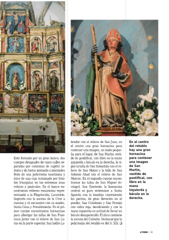 tón triangular, en los extremos unas tramos las tallas de San Miguel Ar- libro en la