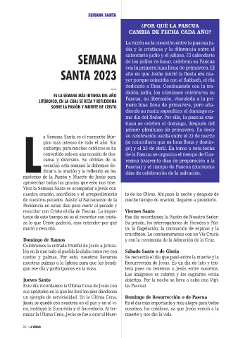 a Semana Santa es el momento litúr- su celebración oscila entre el 22 de marzo