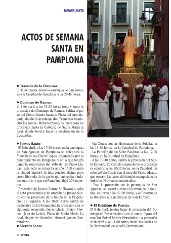 - El 6 de abril, a las 17:30 horas, en la parroquia las 11:30 horas, en la Catedral de Pamplona.