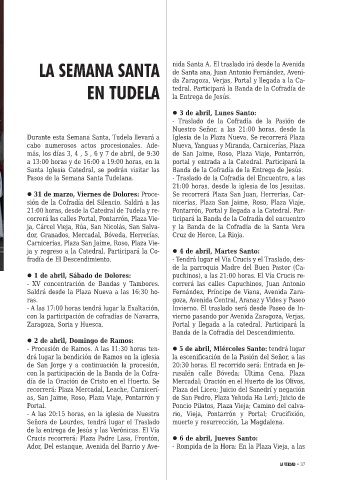 21:00 horas, desde la Catedral de Tudela y re- Pontarrón, Portal y llegada a la Catedral. Par-