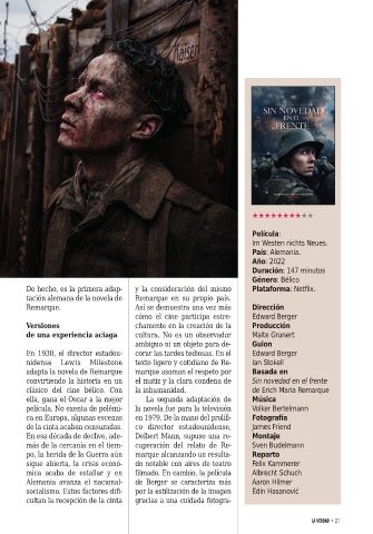 En 1930, el director estadou- corar las tardes tediosas. En el Edward Berger