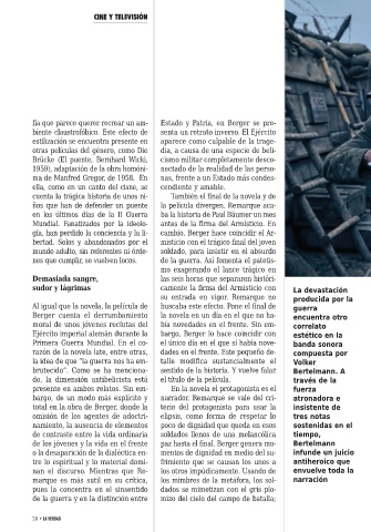 bargo, de un modo más explícito y narrador. Remarque se vale del cri- atronadora e