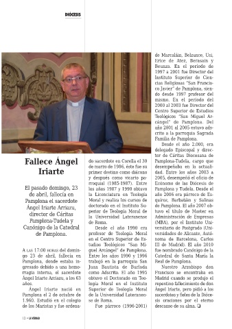 Fallece Ángel do sacerdote en Corella el 30 Pamplona-Tudela, cargo que