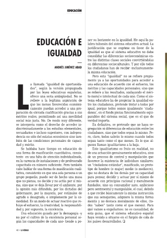 a llamada “igualdad de oportunida- una educación de acuerdo con el esfuerzo, los