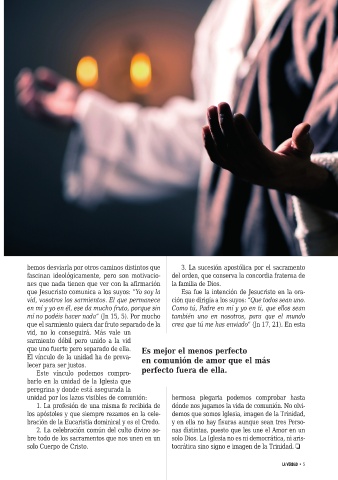 que el sarmiento quiera dar fruto separado de la crea que tú me has enviado” (Jn 17, 21). En esta