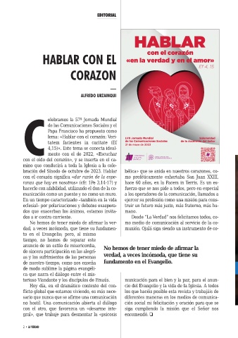 No hemos de tener miedo de afirmar la ver- mo medio de comunicación al servicio de la co-