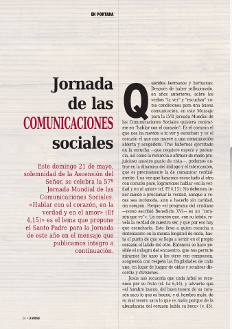 Comunicaciones Sociales. ner miedo a proclamar la verdad, aunque a ve-
