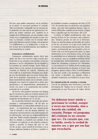 cristianos, en especial, se nos exhorta continua- su latido, revela la verdad de