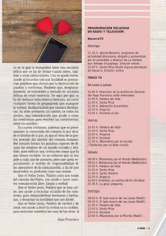 del corazón del Padre, nos ayude a hacer nues- 12.05 h. Eméritos, un camino de fe / Ecclesia