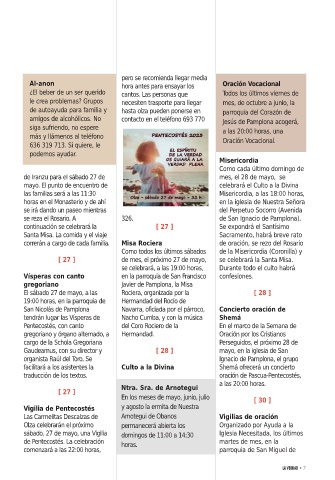 sábado, 27 de mayo, una Vigilia domingos de 11:00 a 14:30 Iglesia Necesitada, los últimos