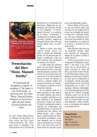 obra de José Javier juicio para resolver un crimen. tulo dedicado a Mons. Irurita,