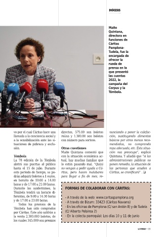 y de 17:00 a 23.00 horas. - A través de Bizum: 33423 (Cáritas Navarra)