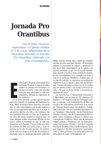 para esta Jornada, el Arzobispo de Pamplona-Tu- da a la oración y a la contemplación de Dios. En