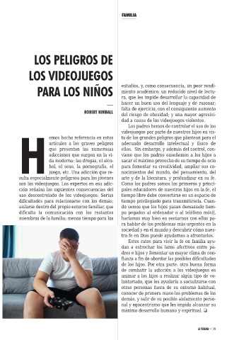 son los videojuegos. Los expertos en esa adic- Como los padres somos los primeros y princi-