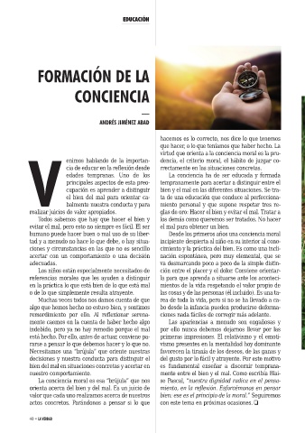 edades tempranas. Uno de los La conciencia ha de ser educada y formada