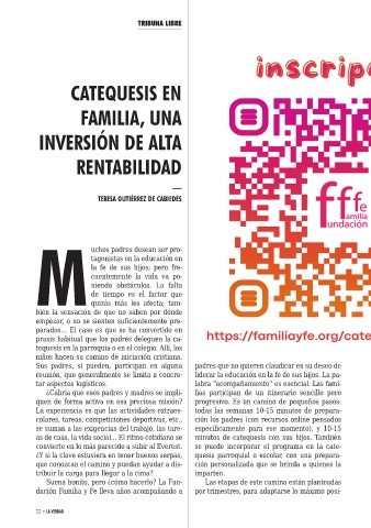 as de casa, la vida social... El ritmo cotidiano se minutos de catequesis con sus hijos. También