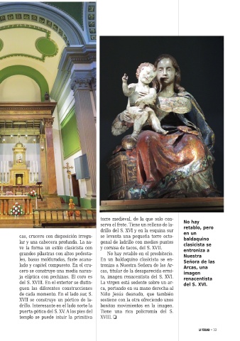 lado y capitel compuesto. En el cru- troniza a Nuestra Señora de las Ar-