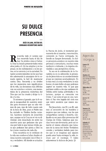 vo y verdadero. Allí donde se actualiza saboreemos la dulzura de Jesús. ❏