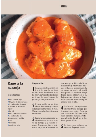 1 la cola de rape. La partimos cucharada de miel y el perejil