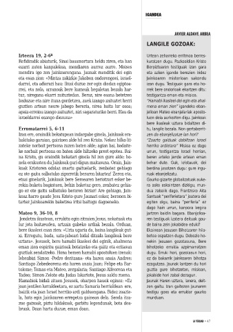 koaz harro gaude Jesu Kristo gure Jaunari esker, beronen bi- Santuak “periferietara” joatera dei