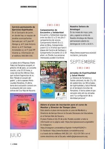 En el Santuario de Javier, Encuentro y Solidaridad En los meses de mayo, junio,