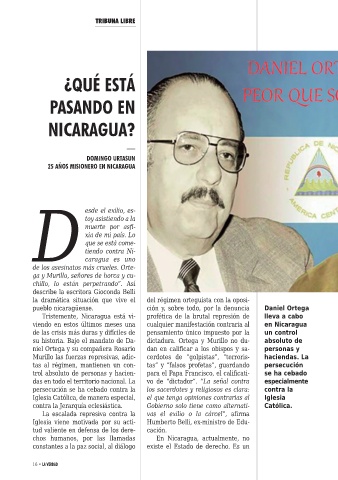 pueblo nicaragüense. ción y, sobre todo, por la denuncia Daniel Ortega