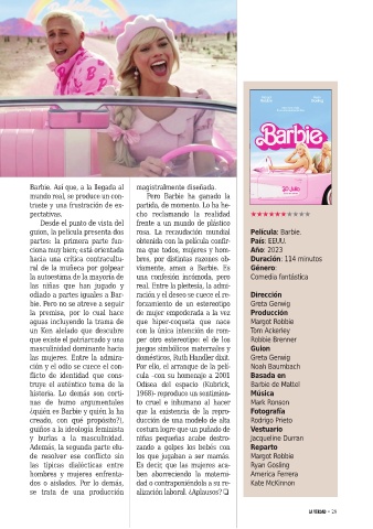 guion, la película presenta dos rosa. La recaudación mundial Película: Barbie.