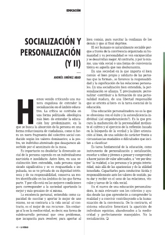 cialización bien entendida, cada persona sigue tro” la realidad, a las personas y la propia interio-
