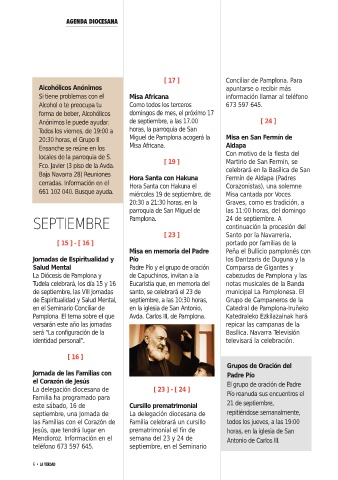 septiembre, una Jornada de La delegación diocesana de repitiéndose semanalmente,