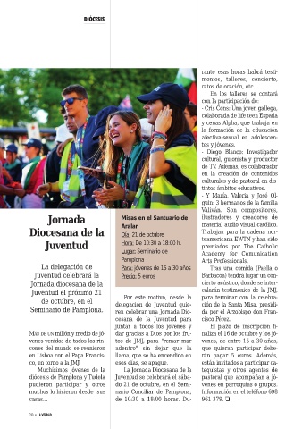 diócesis de Pamplona y Tudela Juventud se celebrará el sába- pastoral que acompañan a jó-