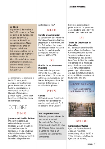 Pamplona, y el 5 de octubre en el Santísimo y habrá un días para religiosas,