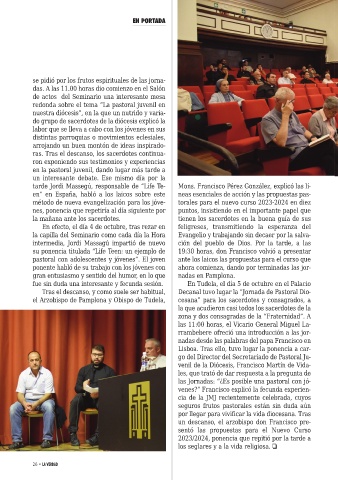 el Arzobispo de Pamplona y Obispo de Tudela, cesana” para los sacerdotes y consagrados, a