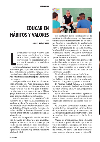ción del hábito, pero hay que ir más allá del me- Uno de los principales fines de la educación