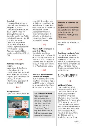 Diocesana de la Juventud, de por deseo de nuestro de Aralar, todos los domingos
